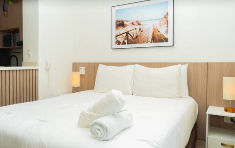 The apartment offers all the comforts you need for your stay: air conditioning, a state-of-the-art 55-inch TV, and Wi-Fi. It features a queen-size bed with four pillows and comfortable linens, a fully equipped kitchen, a bathroom with a hot shower and all the basic amenities. There’s a laundry area with an 11kg washing machine, as well as a communal laundry area with dryers and a clothesline on the balcony.